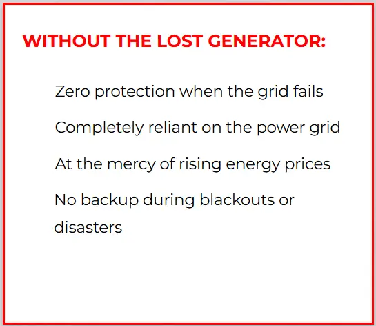 1º High energy bills, frequent blackouts, and the fear of being too dependent on power companies are problems many of us face today. I know how frustrating it can be to see your electricity bill eat away at your paycheck every month, while at the same time wondering what you would do in an emergency. That’s exactly why I decided to take a closer look at The Lost Generator — a digital program that promises to change the way we think about energy independence.